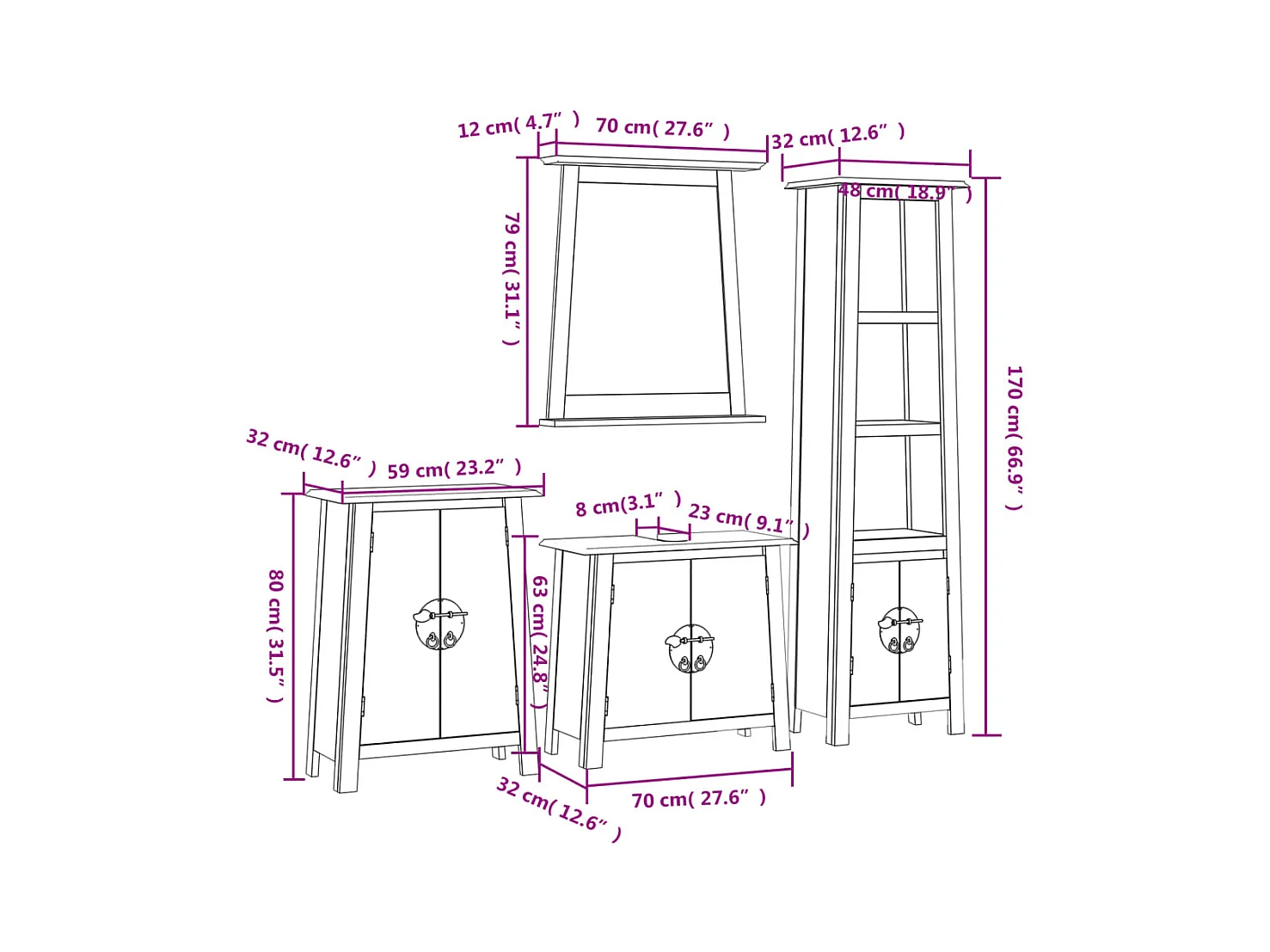 Ensemble de meubles de salle de bain 4 pcs bois de pin massif