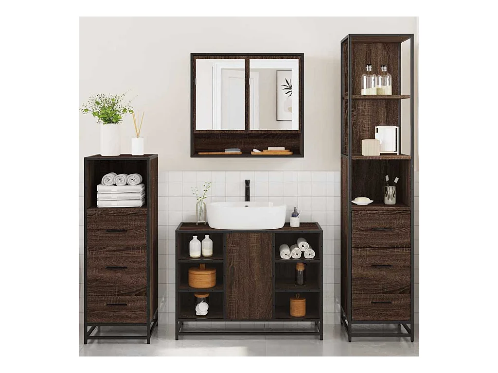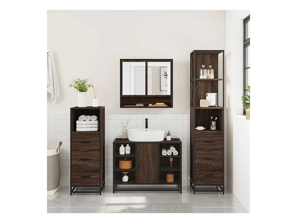 Ensemble de meubles de salle de bain 4 pcs chêne marron