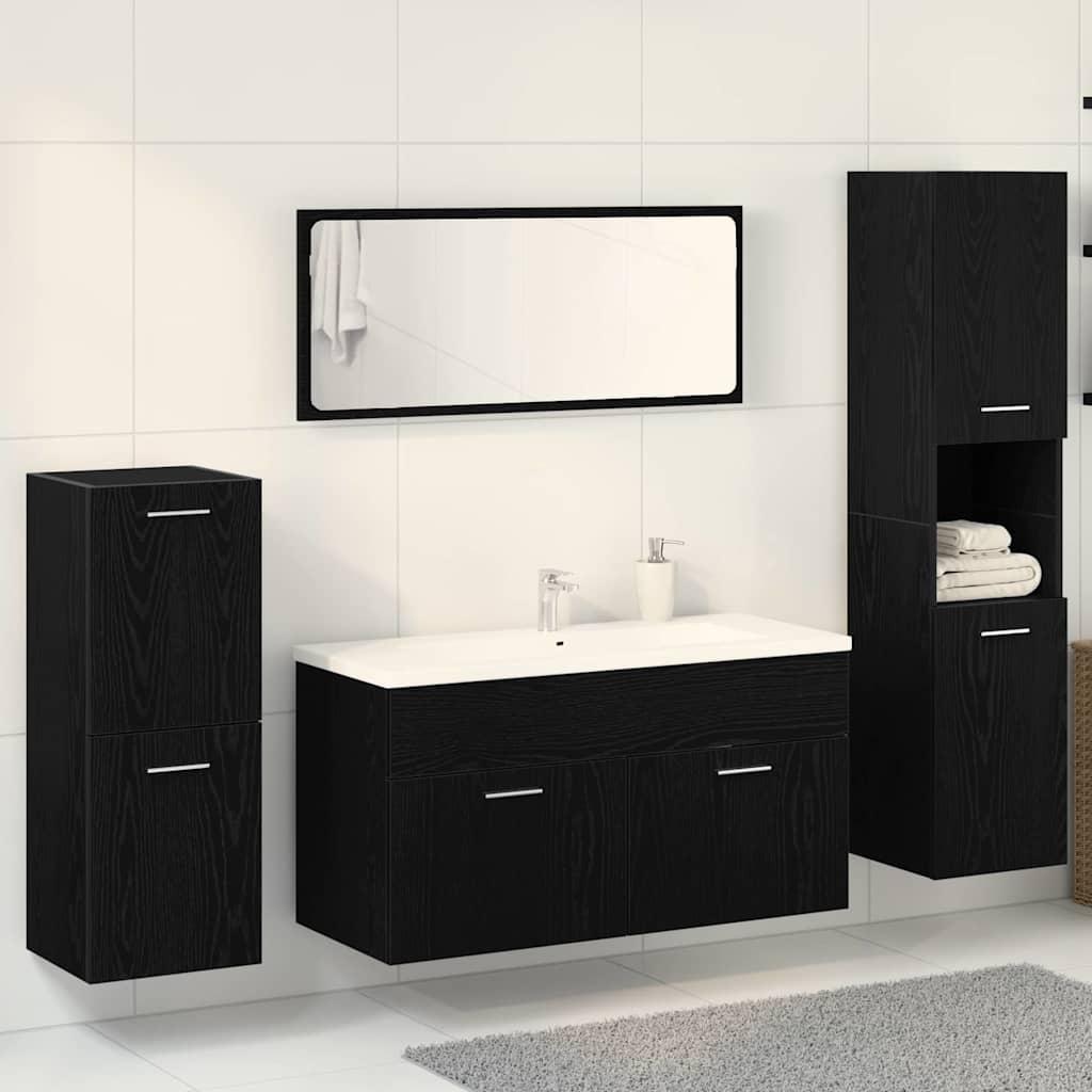 Set de Meubles de Salle de Bain avec étagère 4 pcs Chêne noir