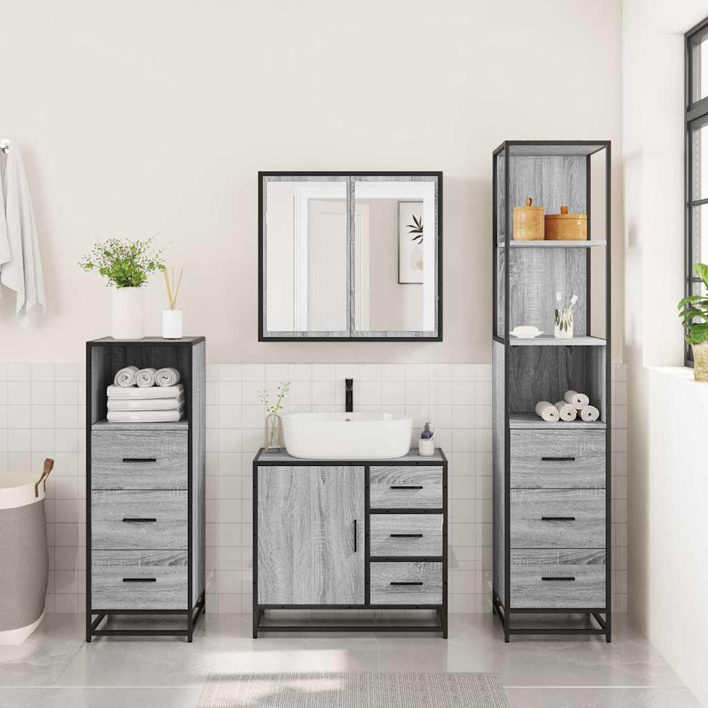 Ensemble de meubles de salle de bain 4 pcs sonoma gris