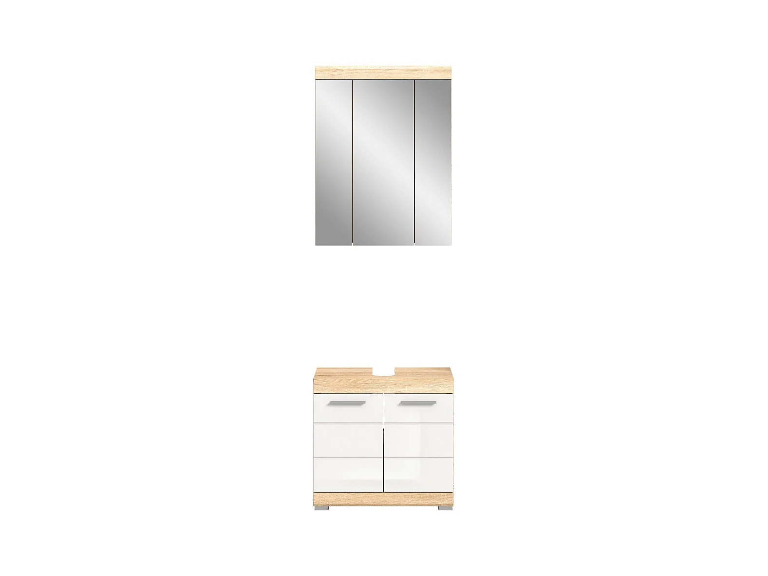 Ensemble de meubles de salle de bain RIDLEY – Meuble sous vasque et rangement miroir – Blanc et chêne clair