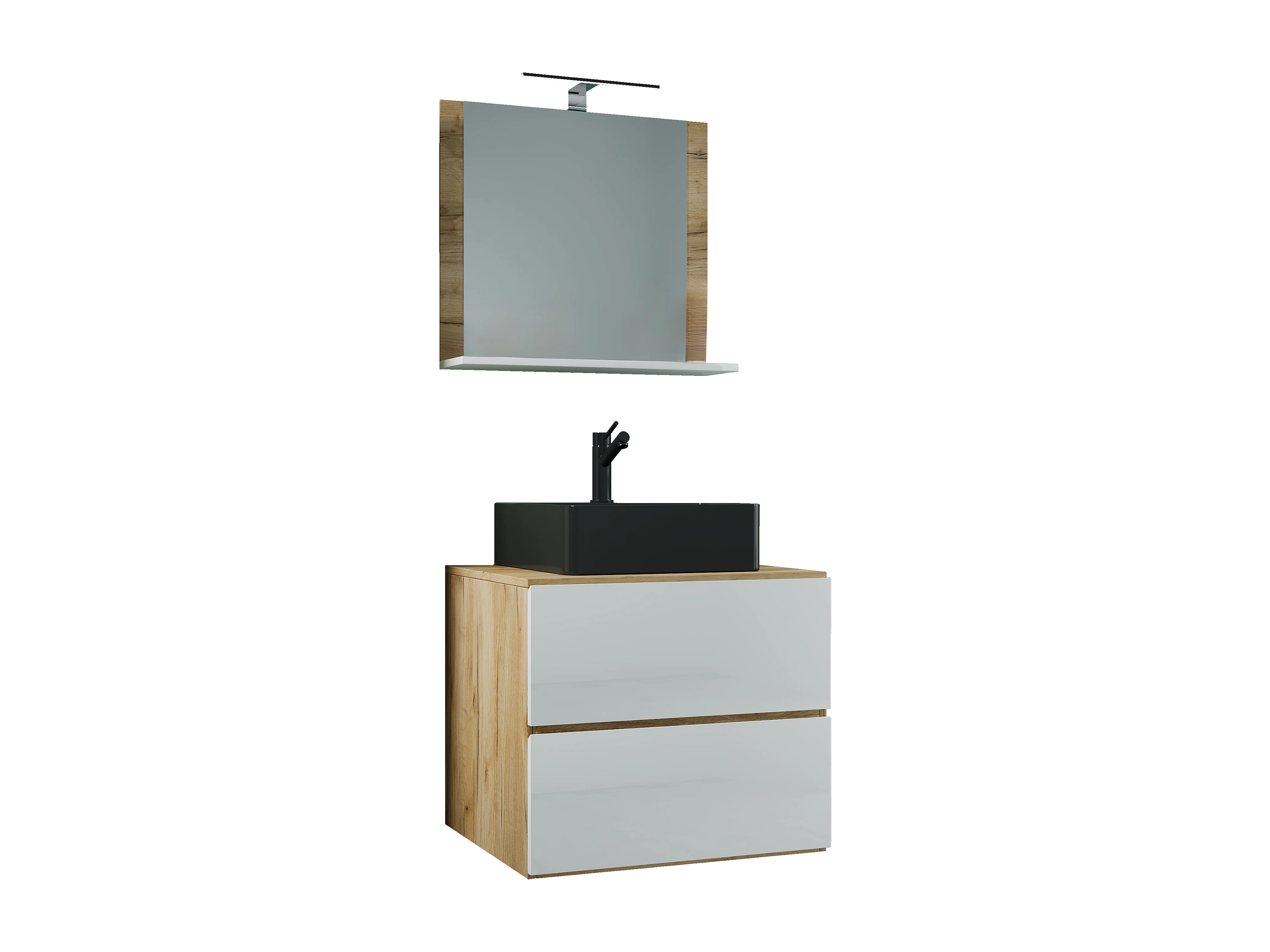 Bathroom furniture washbasin Lendas Honey oak / White H. 124 x W. 60 x D. 52 cm