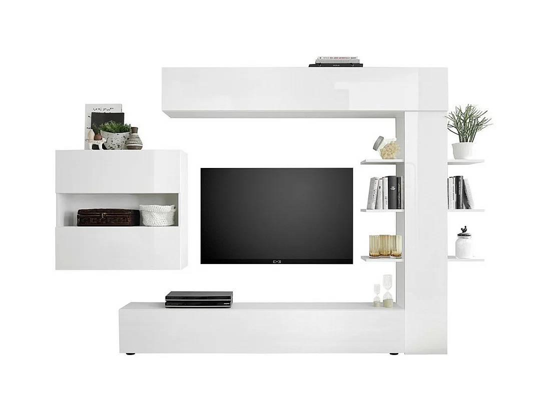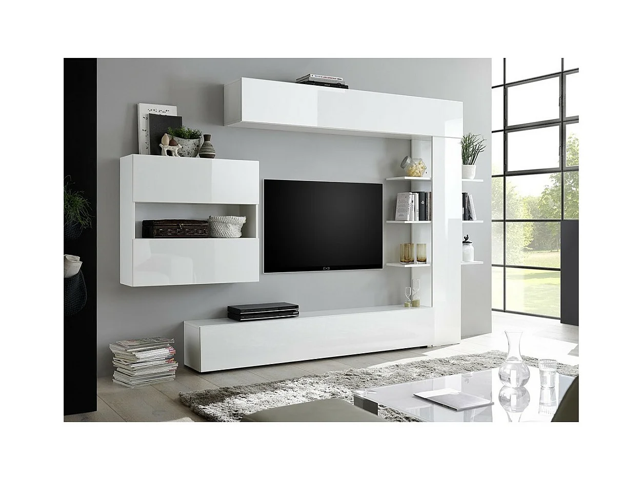 Ensemble de meubles de salon design avec nombreux rangements collection VASCO. Coloris blanc laqué.