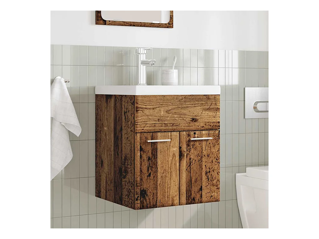 Meuble lavabo avec bassin et robinet intégrés vieux bois