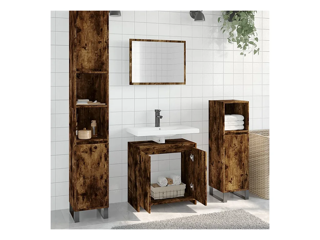 Ensemble de meubles salle de bain 3 pcs Chêne fumé FR90751