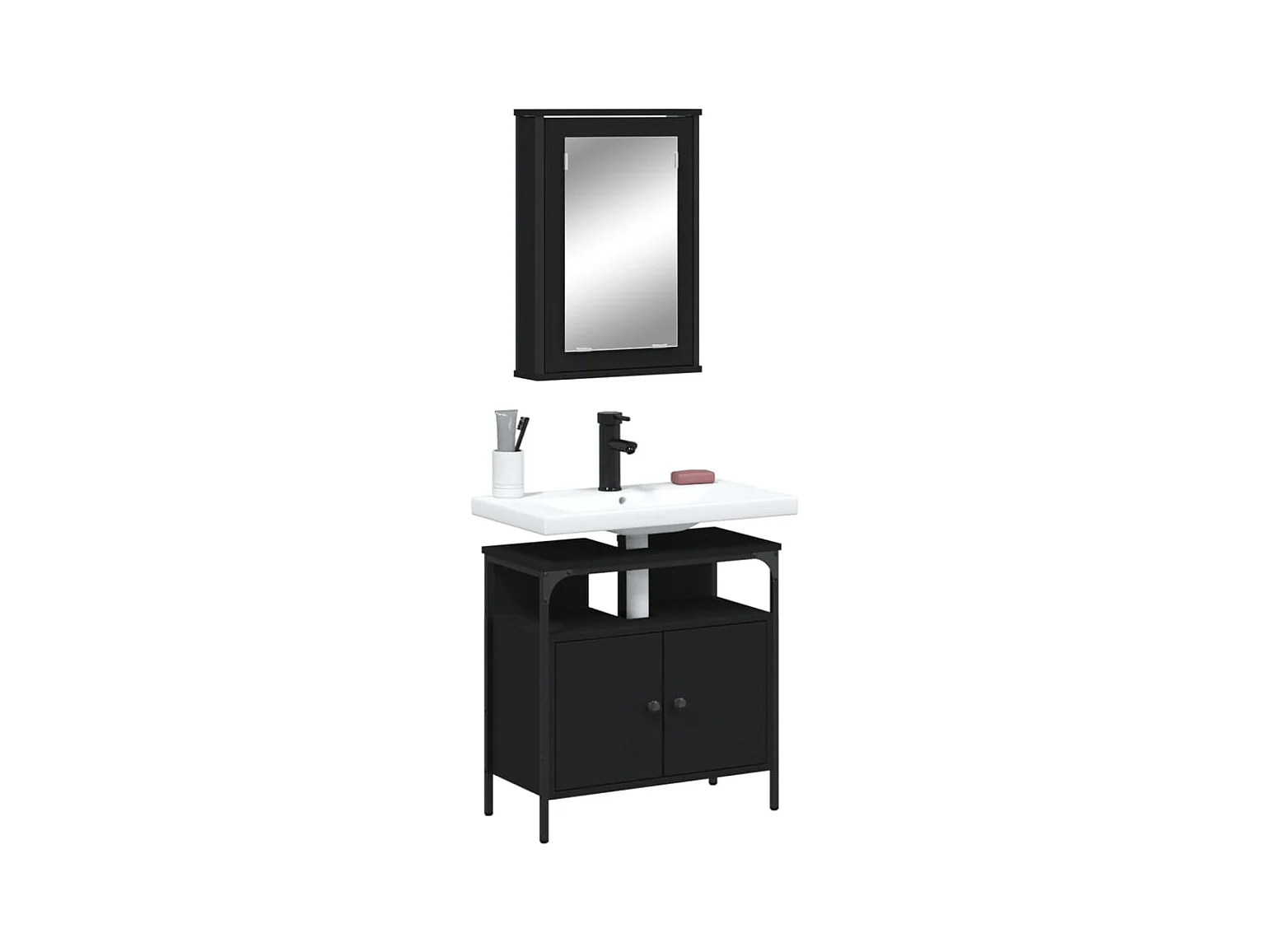 Ensemble de meubles salle de bain 2 pcs noir bois d'ingénierie