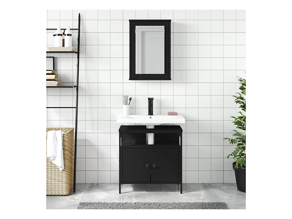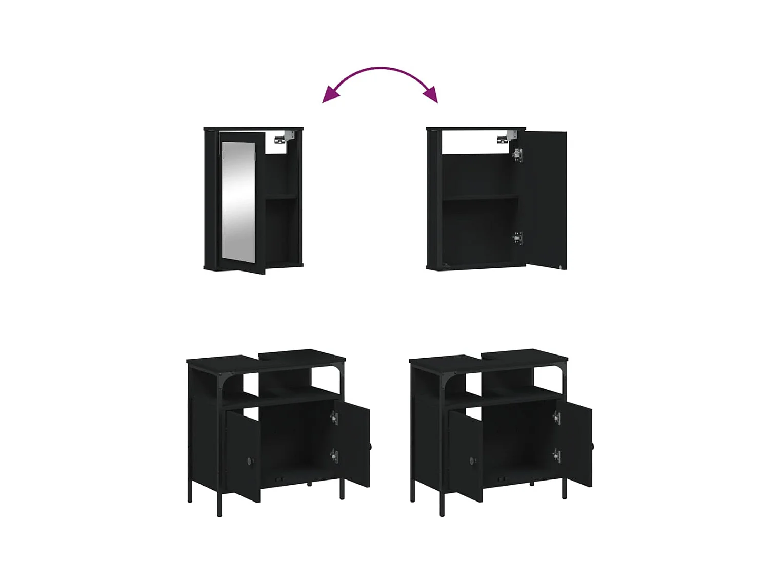 Ensemble de meubles salle de bain 3 pcs noir bois d'ingénierie