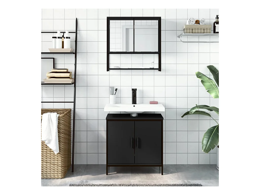 Ensemble de meubles salle de bain 2 pcs noir bois d'ingénierie
