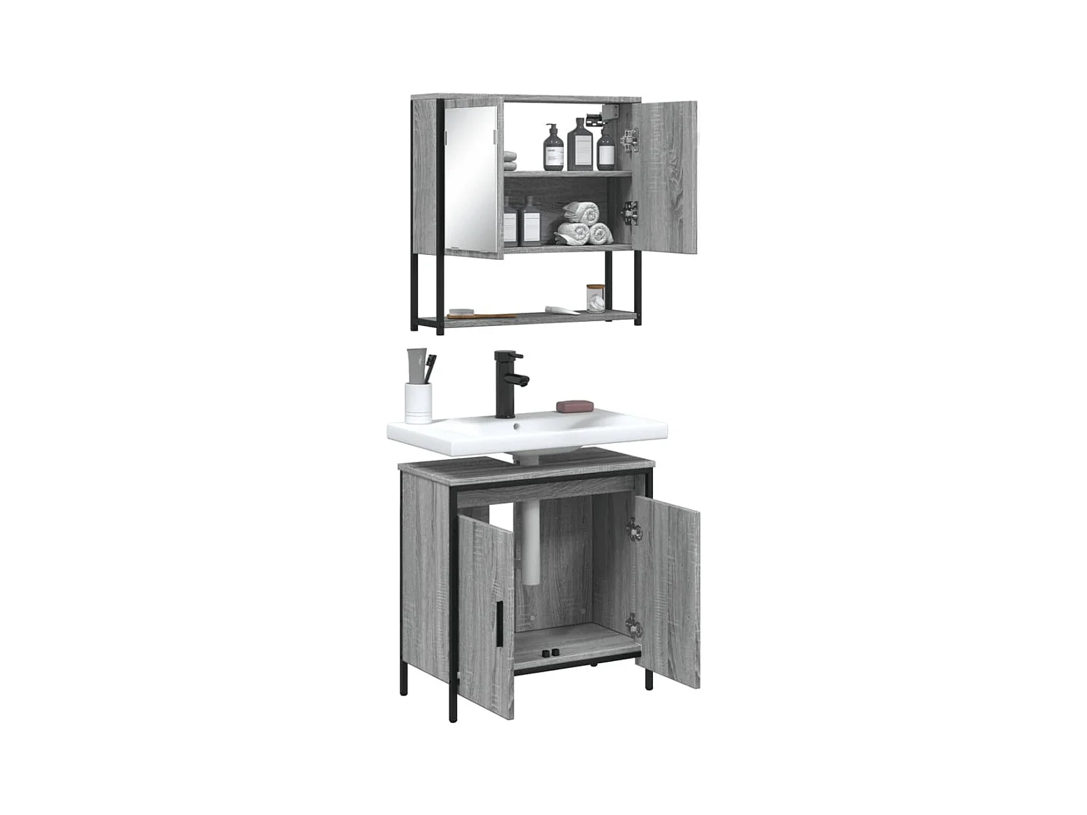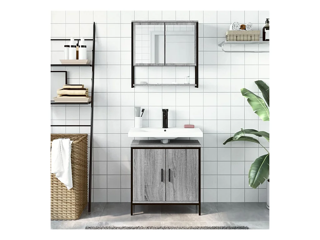 Ensemble de meubles salle de bain 3 pcs Sonoma gris FR52781