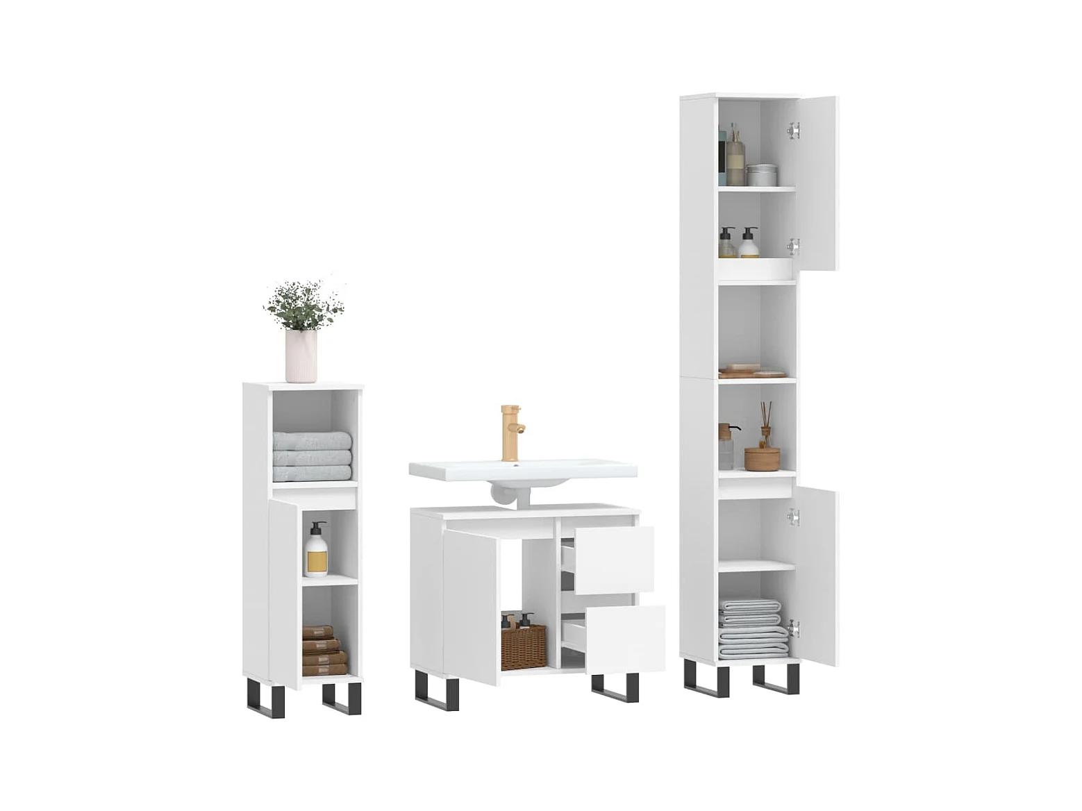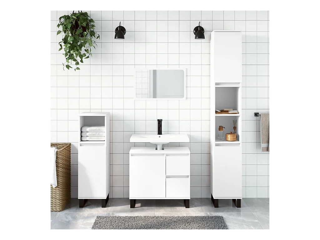 Ensemble d'armoires salle de bain 3 pcs blanc bois d'ingénierie