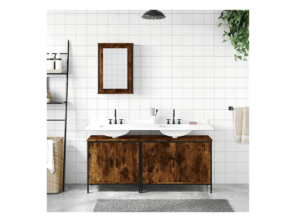 Ensemble de meubles salle de bain 3 pcs Chêne fumé FR28262