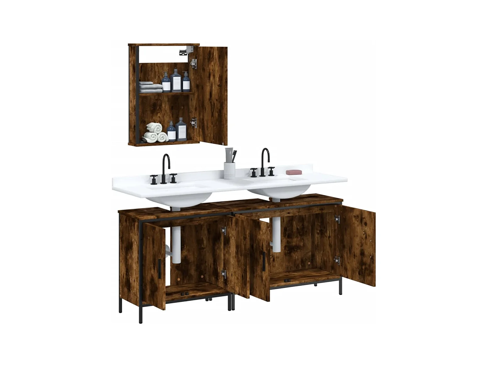 Ensemble de meubles salle de bain 3 pcs Chêne fumé FR80934