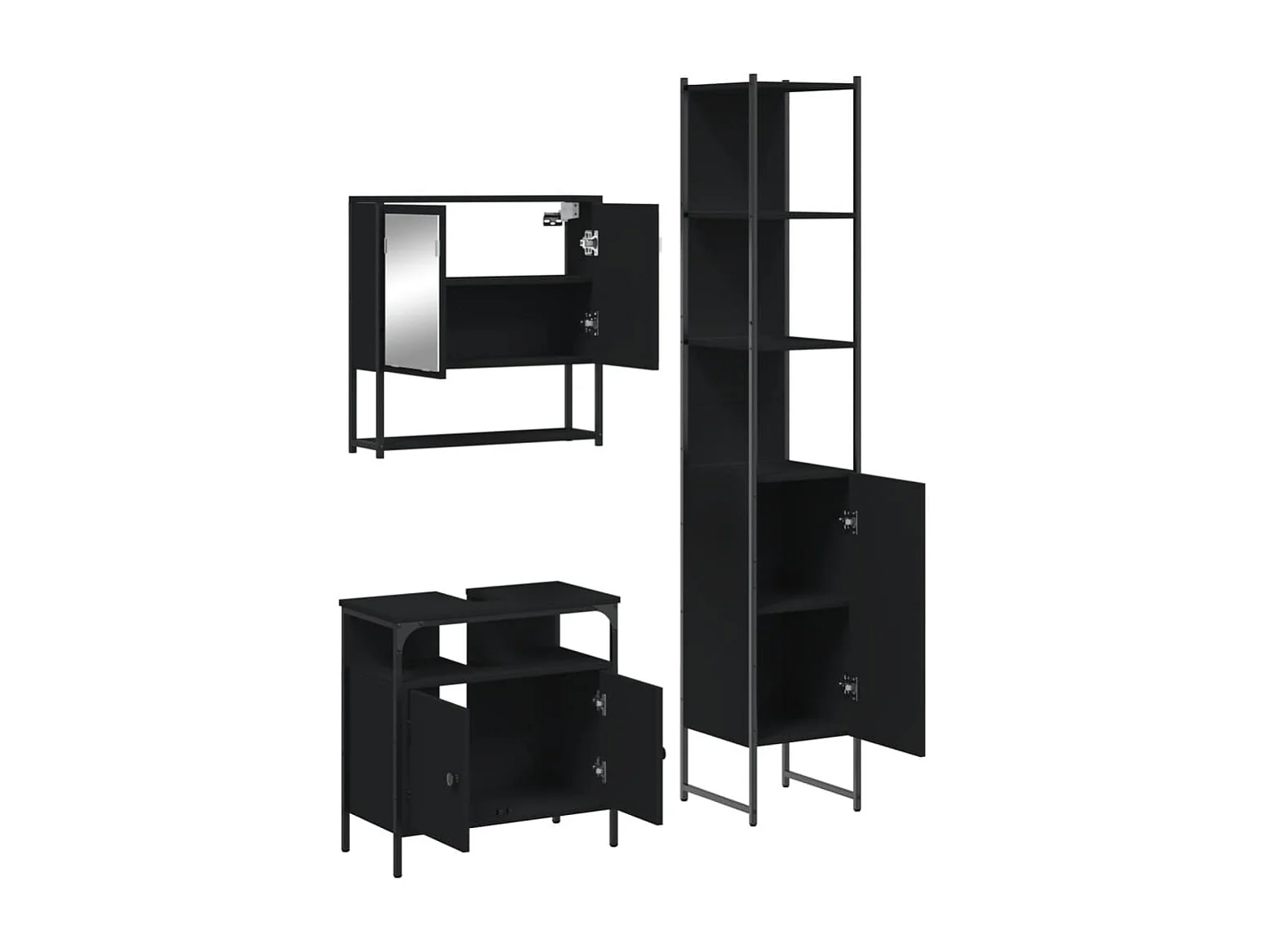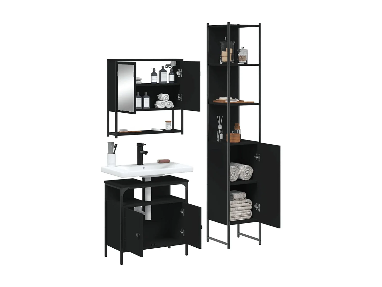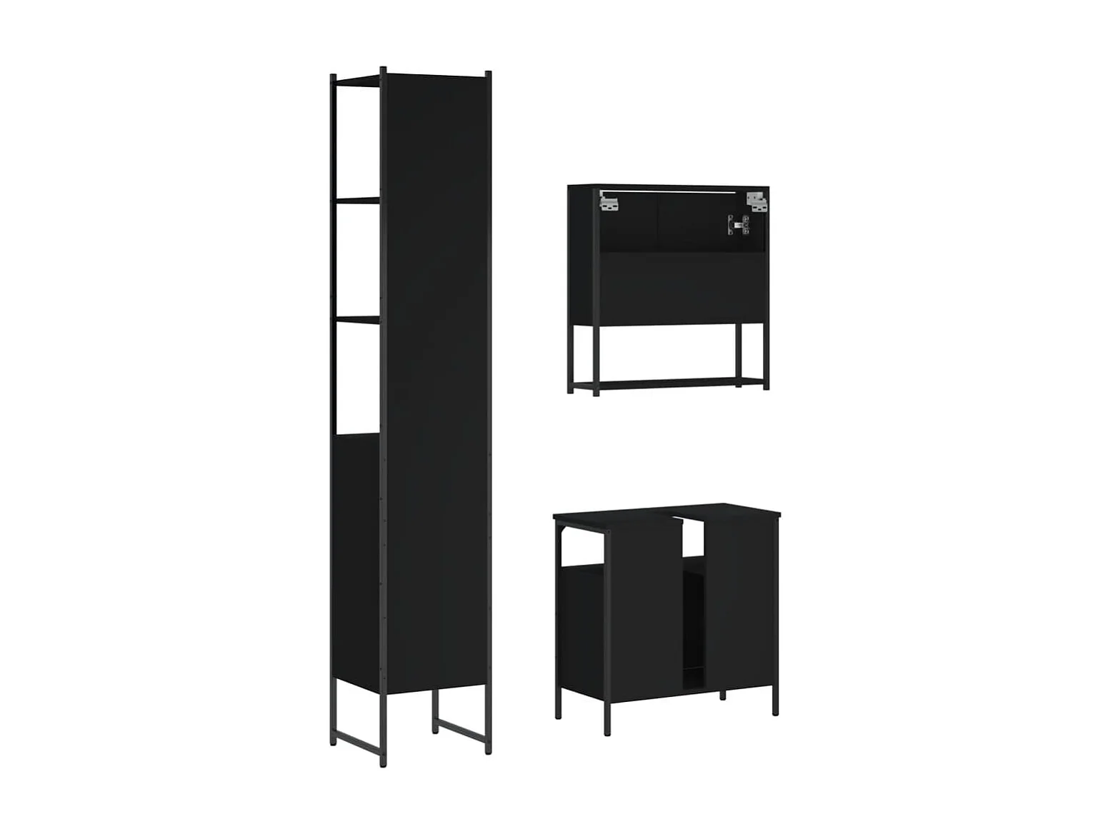 Ensemble d'armoires salle de bain 3 pcs noir bois d'ingénierie