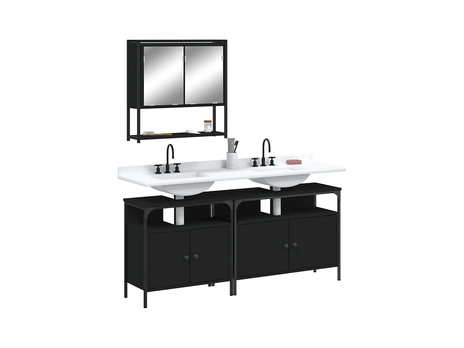 Ensemble d’armoires salle de bain 4 pcs noir bois d'ingénierie