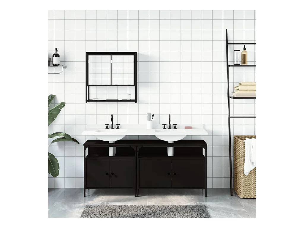 Armoire lavabo de salle de bain noir 91x35x60 cm