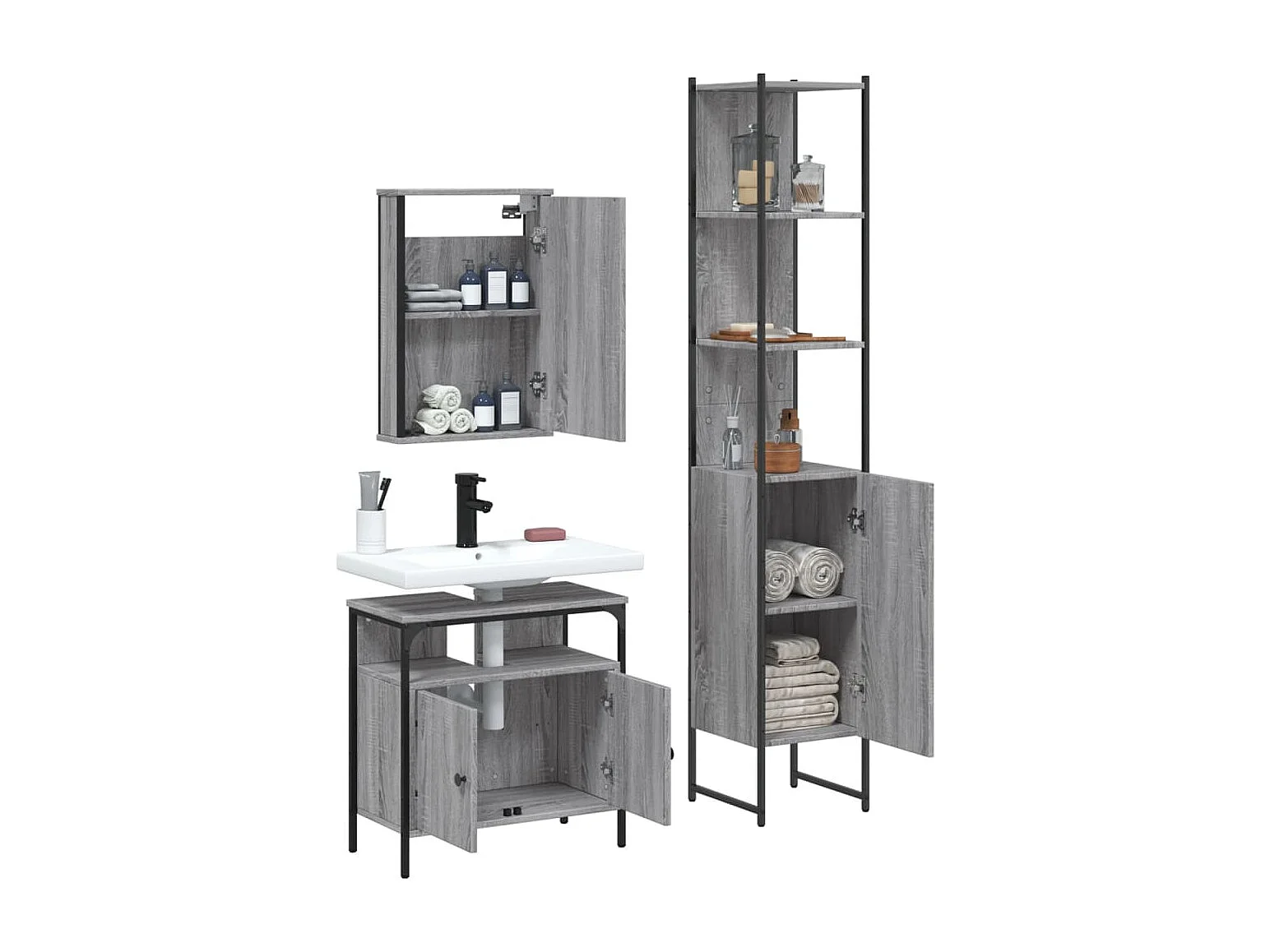 Ensemble de meubles salle de bain 3 pcs Sonoma gris FR37485