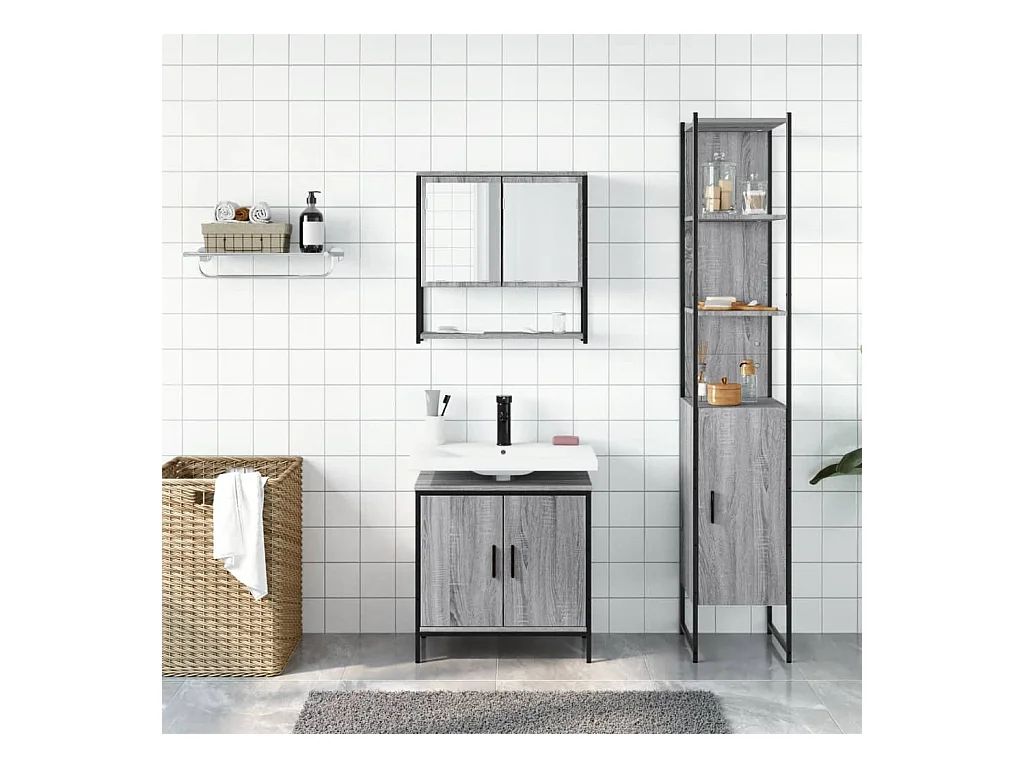 Ensemble de meubles salle de bain 3 pcs Sonoma gris FR58460