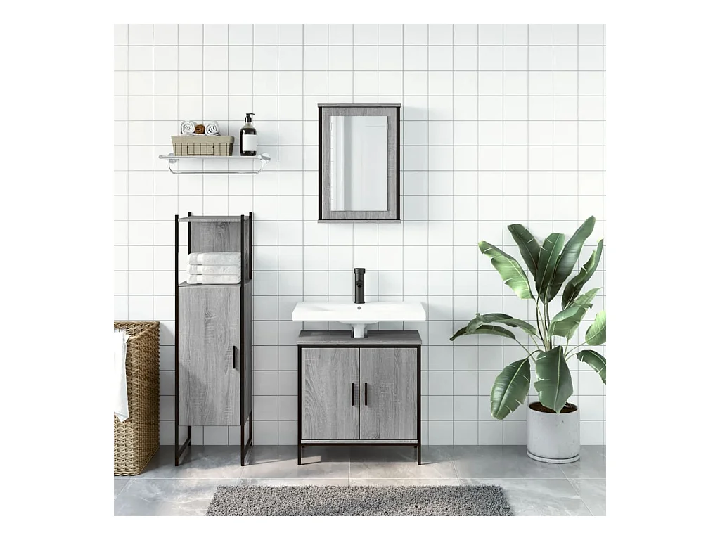 Ensemble de meubles salle de bain 3 pcs Sonoma gris FR10169