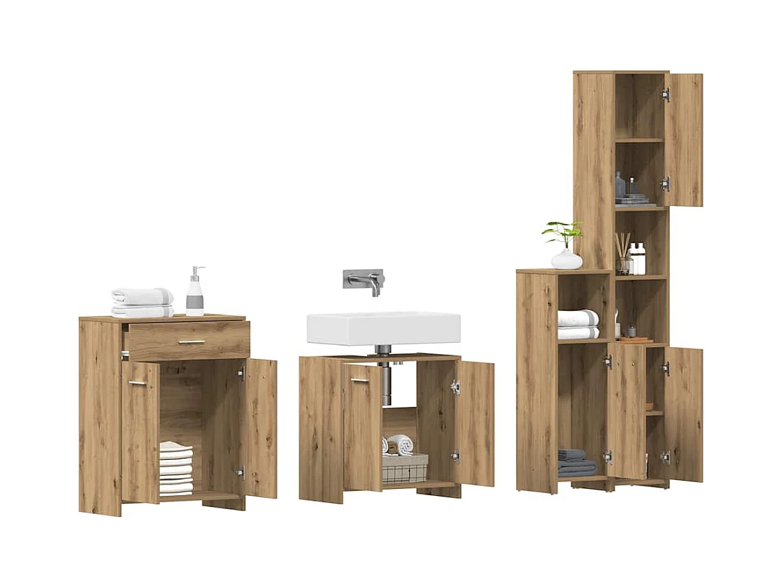 Ensemble d'armoires de salle de bain 2 pcs chêne fumé