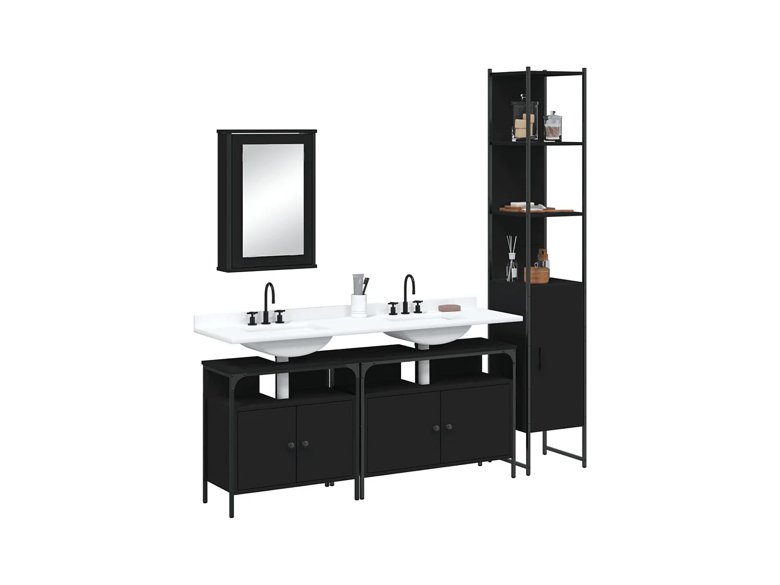 Ensemble de meubles salle de bain 4 pcs noir bois d'ingénierie