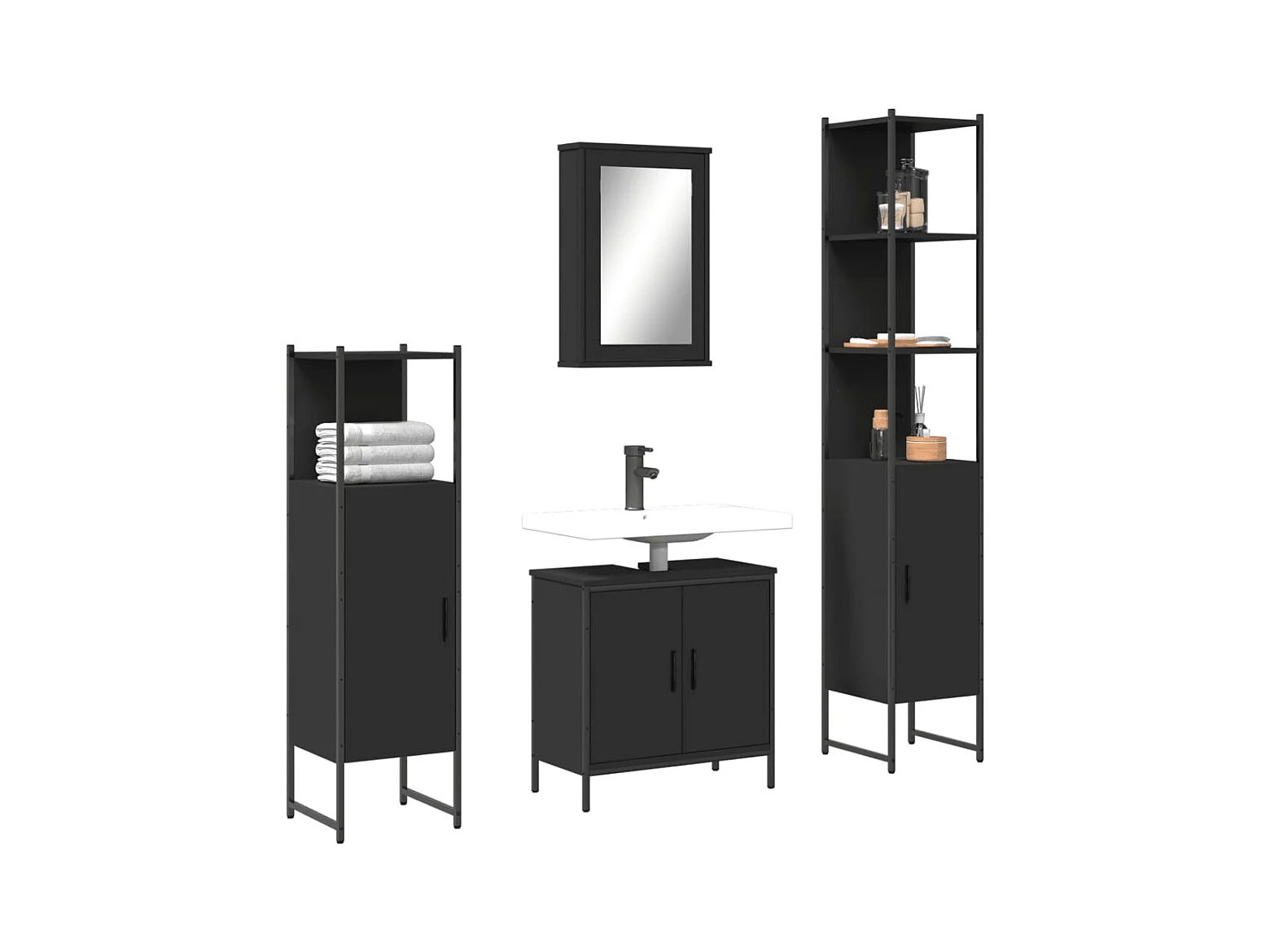 Ensemble de meubles salle de bain 4 pcs noir bois d'ingénierie