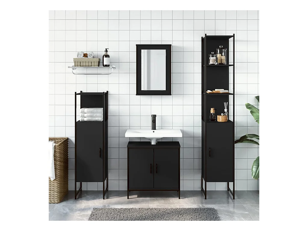 Ensemble de mobilier de salle de bain avec stockage 3 pcs Noir