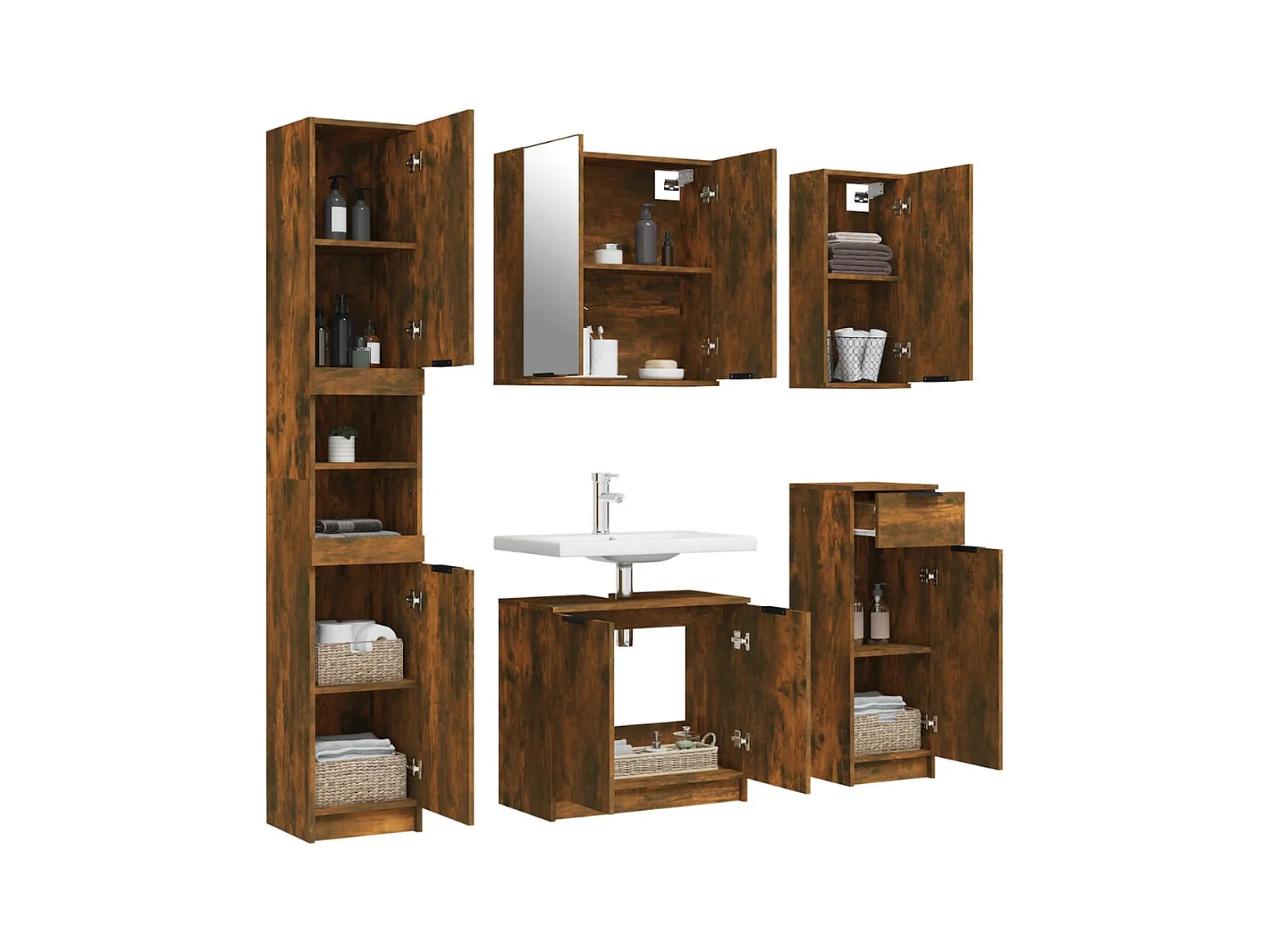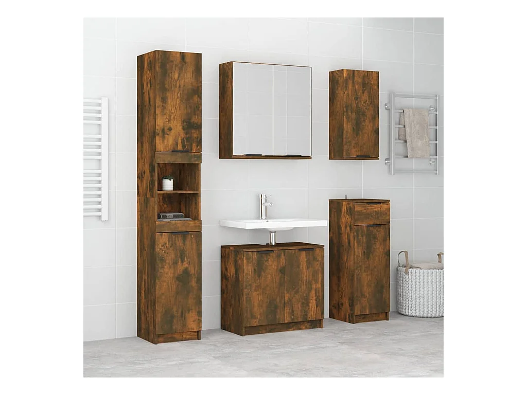 Ensemble de meubles salle de bain 5 pcs Chêne fumé Bois d'ingénierie FR93070