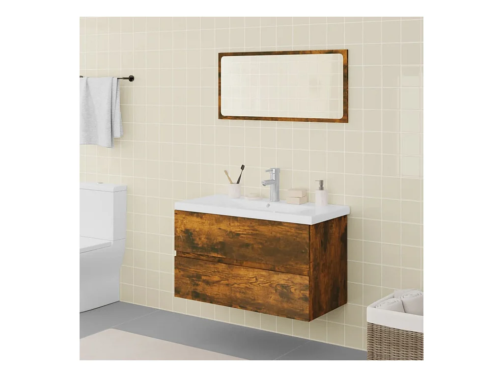 Ensemble de meubles salle de bain Chêne fumé Bois d'ingénierie FR74233