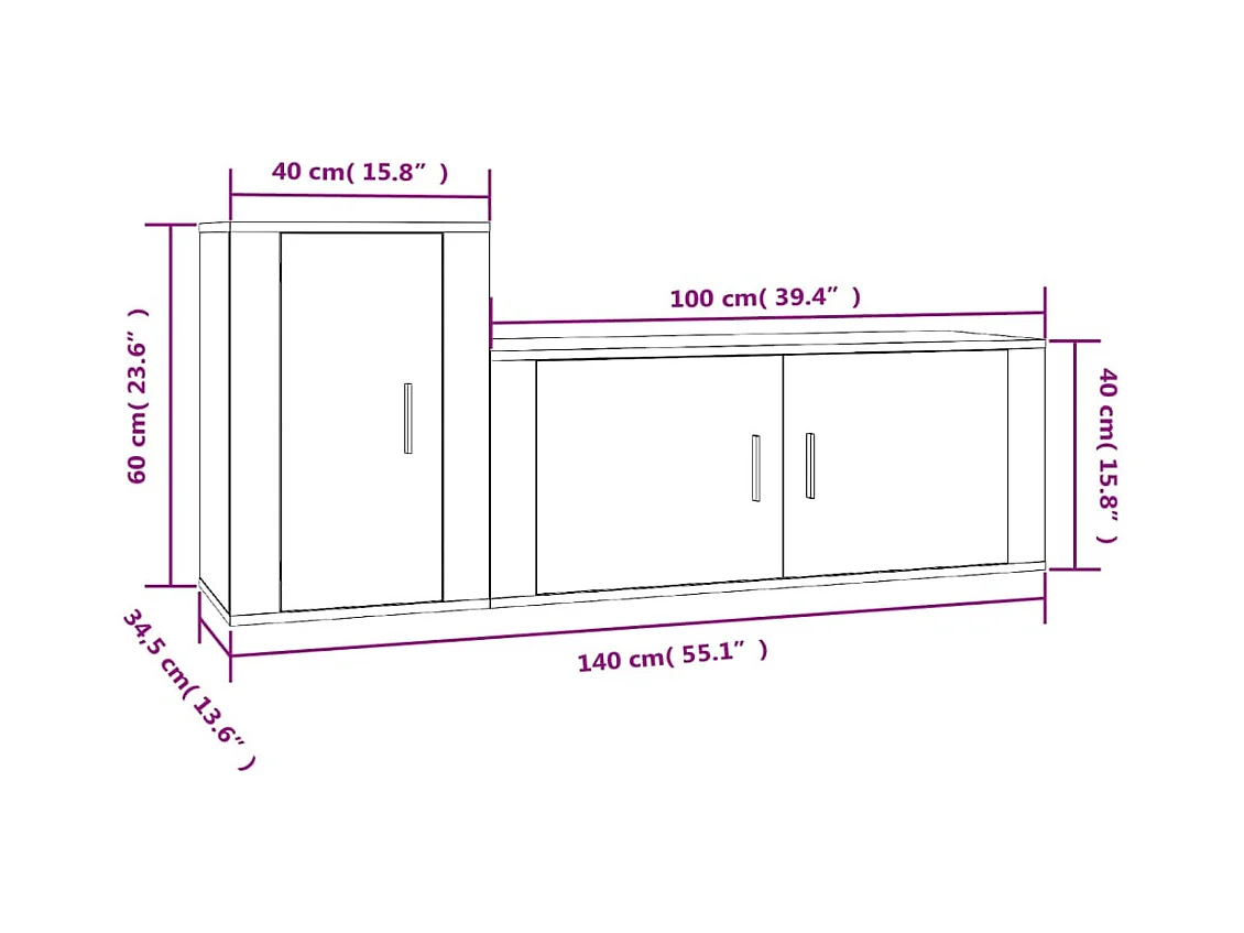 Ensemble de meubles TV 2 pièces chêne sonoma bois d'ingénierie