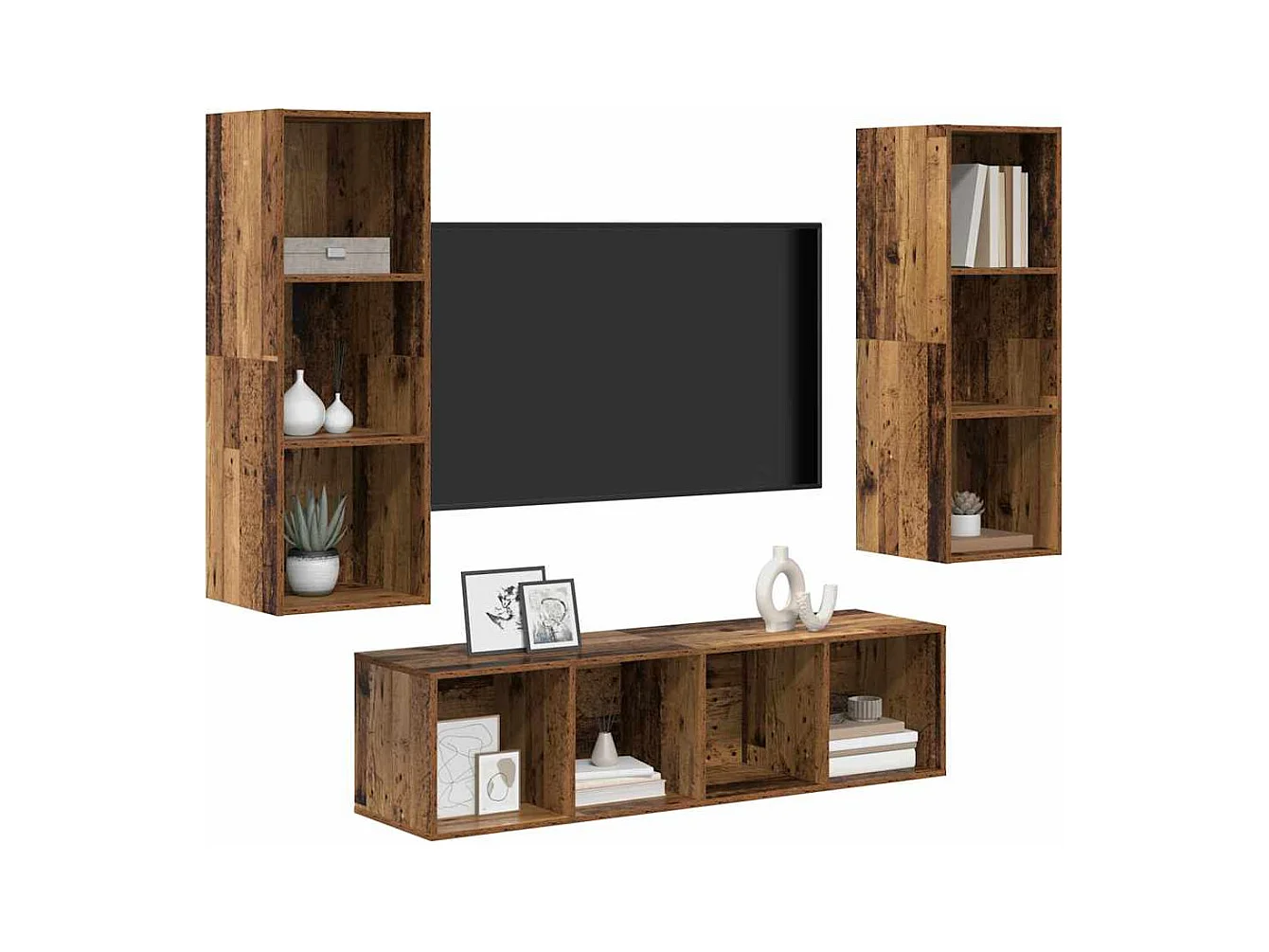 Ensemble de meubles TV 3 pcs Bois ancien 37 x 37 x 142.5 cm