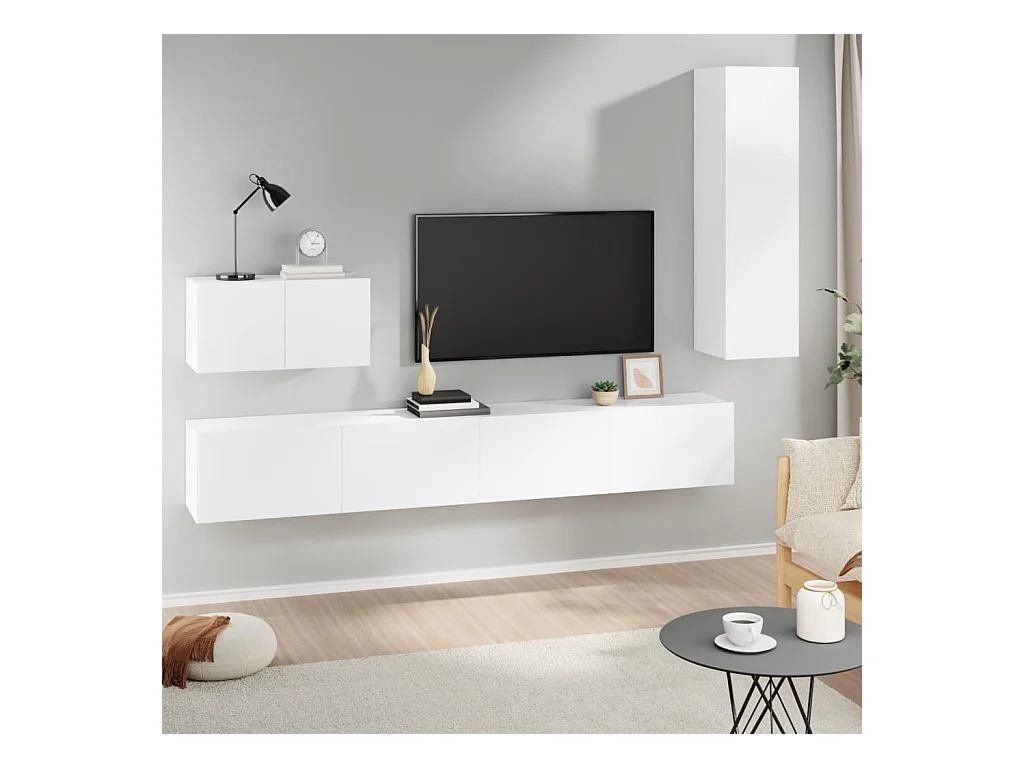 Ensemble de meubles TV 4 pcs Blanc Bois d'ingénierie