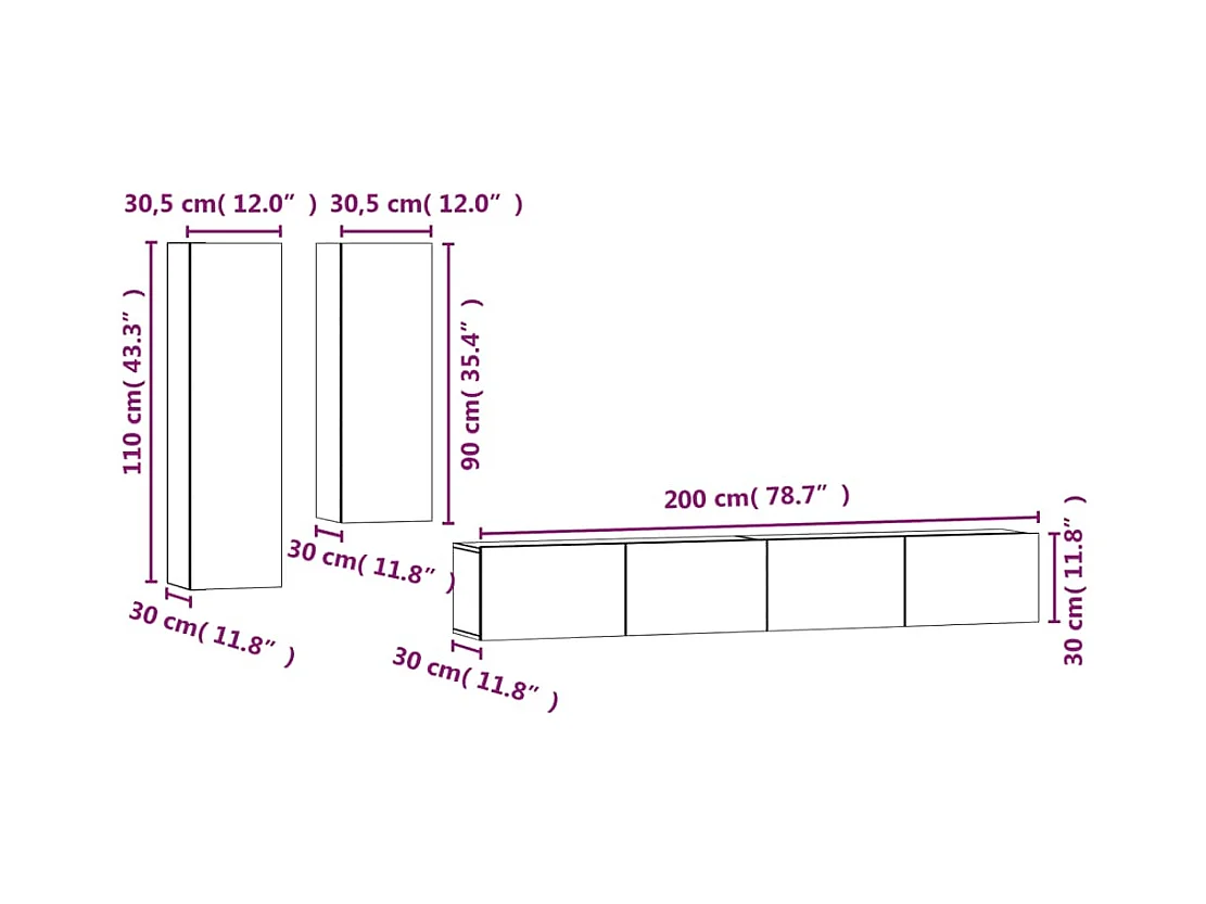 Meuble TV Gris béton 30,5x30x110 cm Bois d’ingénierie