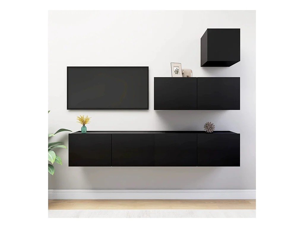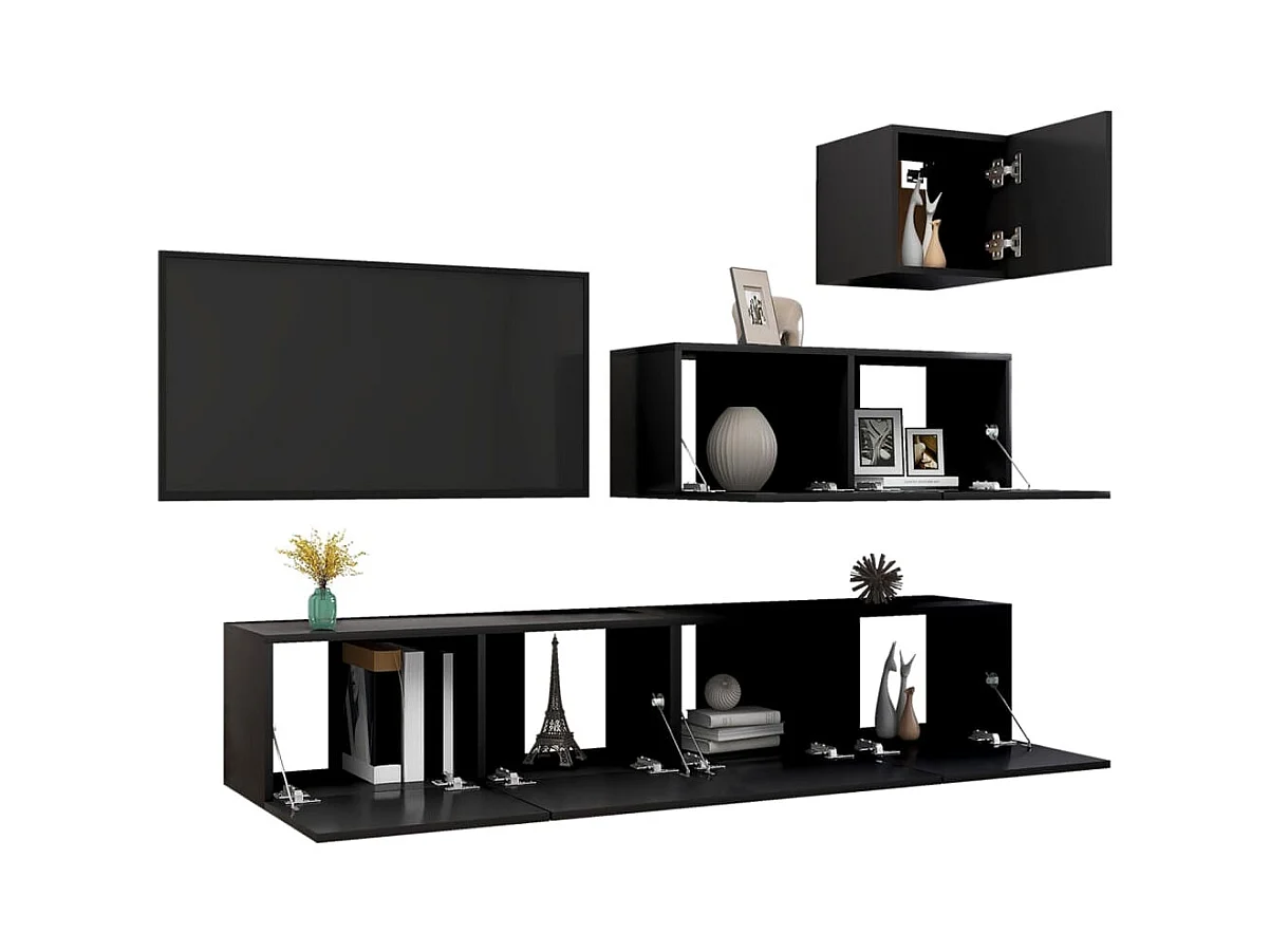 Ensemble de meubles TV 4 pcs Noir Bois d'ingénierie
