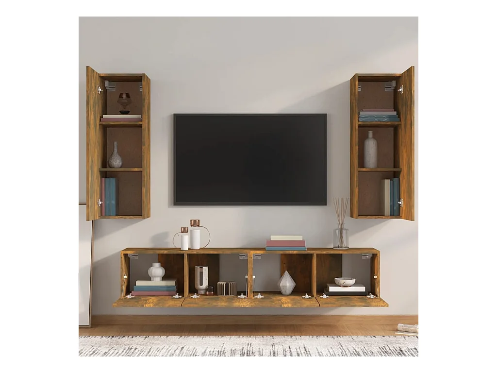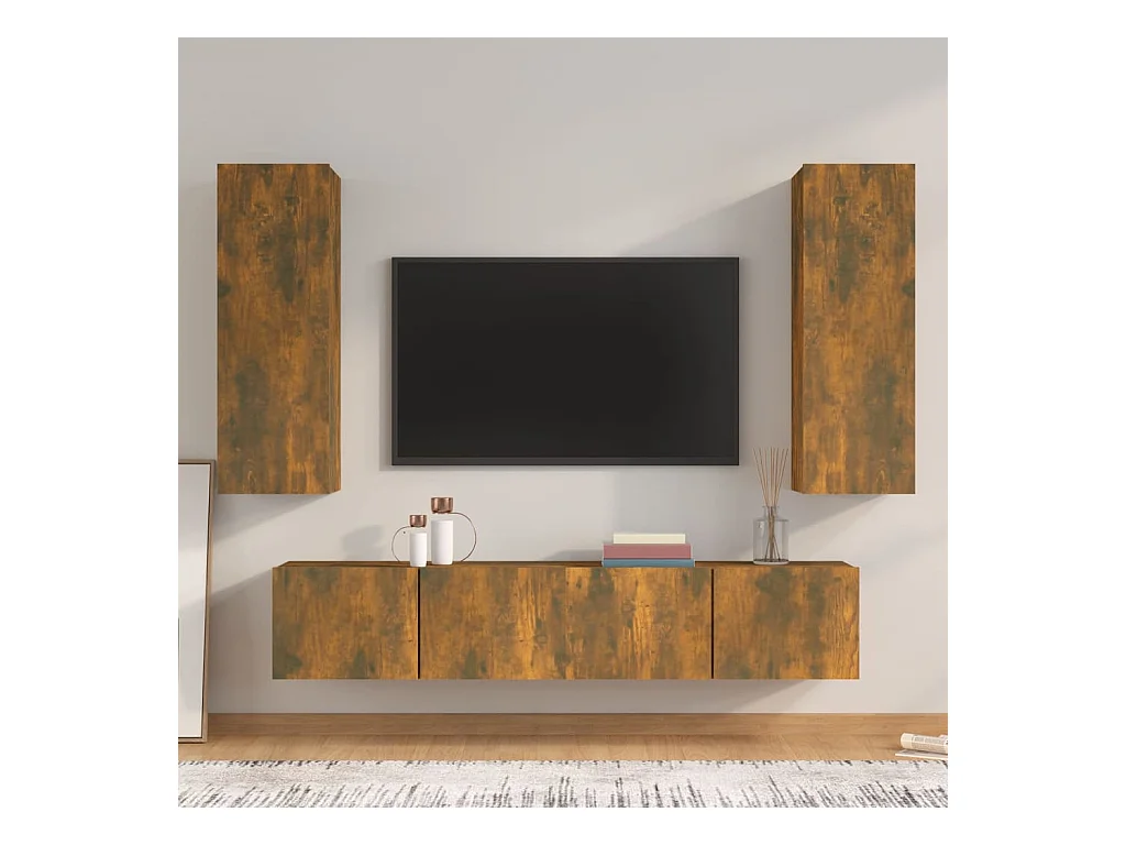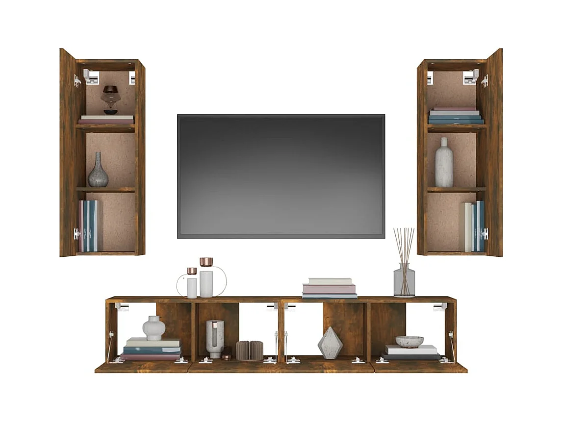 Ensemble de meubles TV 4 pièces Chêne fumé Bois d'ingénierie