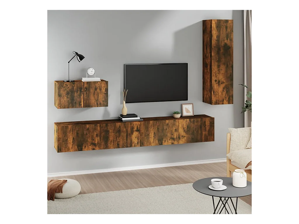 Ensemble de meubles TV 5 pièces Chêne fumé Bois d'ingénierie