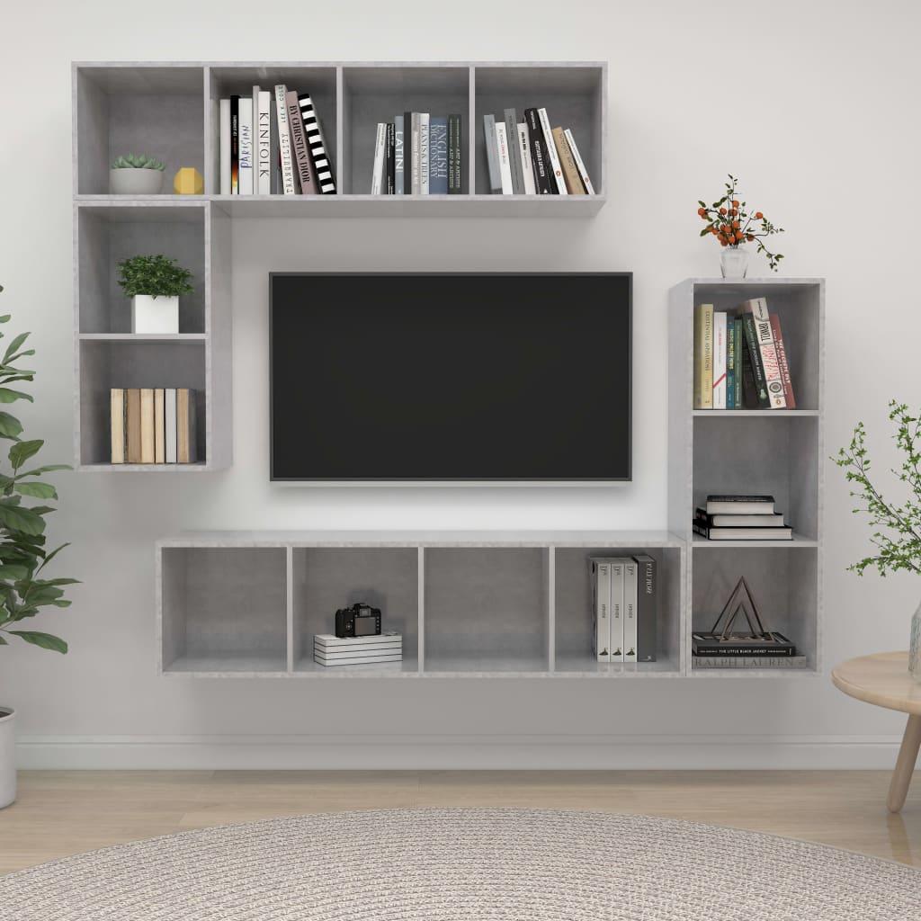 Ensemble de meubles TV 4 pièces Gris béton Bois d'ingénierie