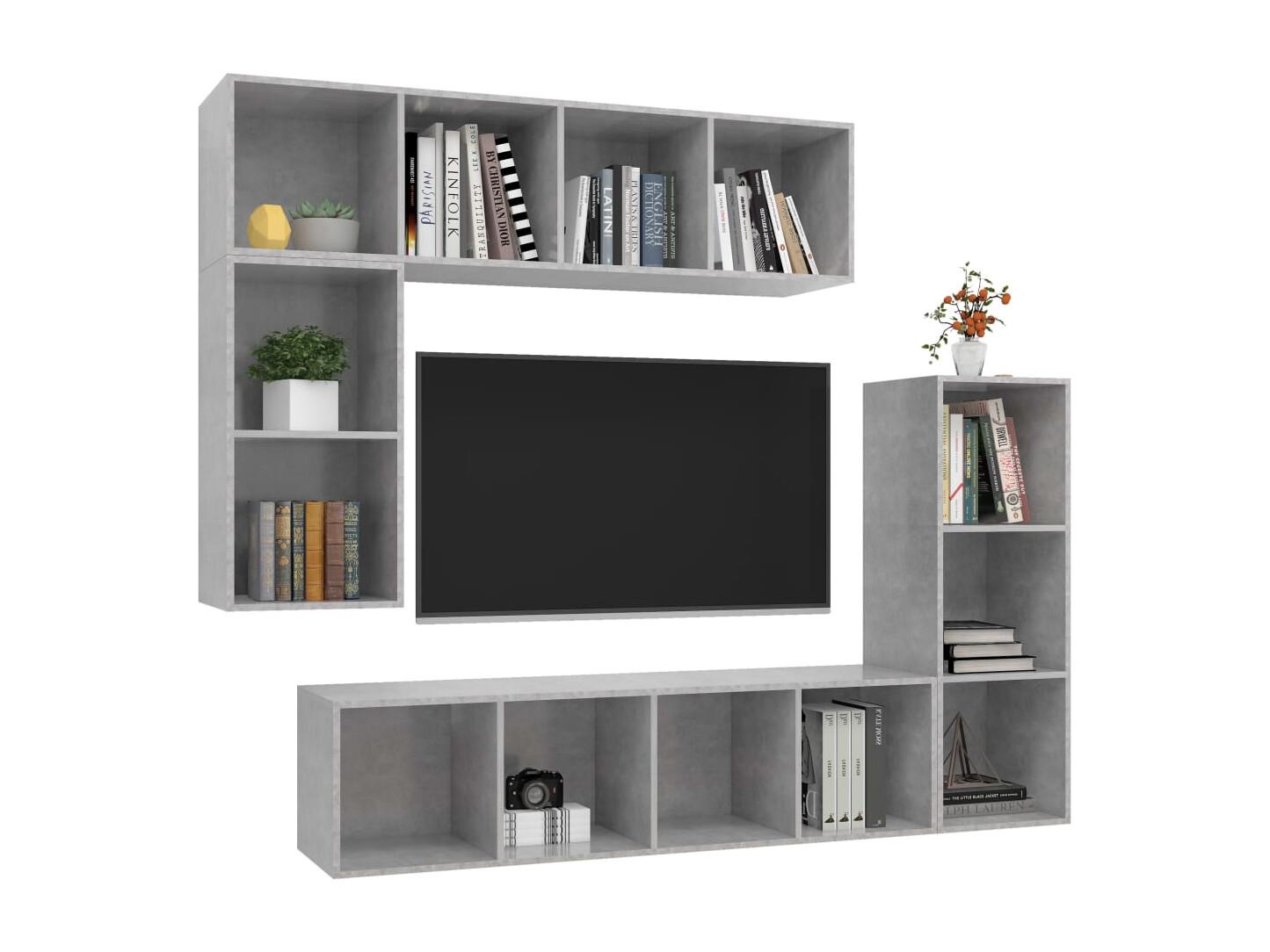 Ensemble de meuble TV 4 pièces Gris béton Bois d'ingénierie
