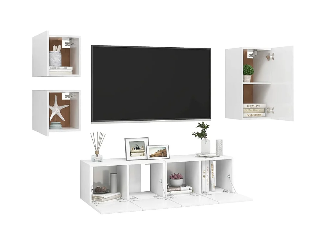 Ensemble de meubles TV 4 pcs Blanc Bois d'ingénierie