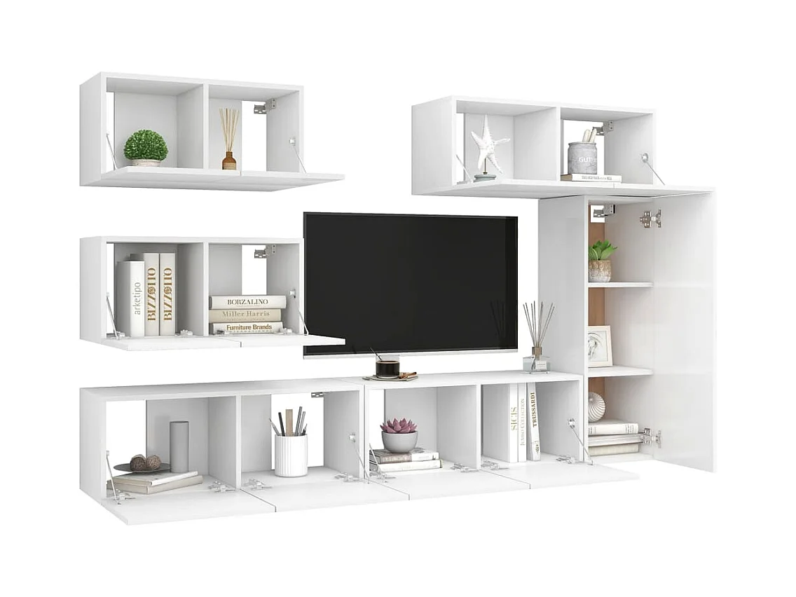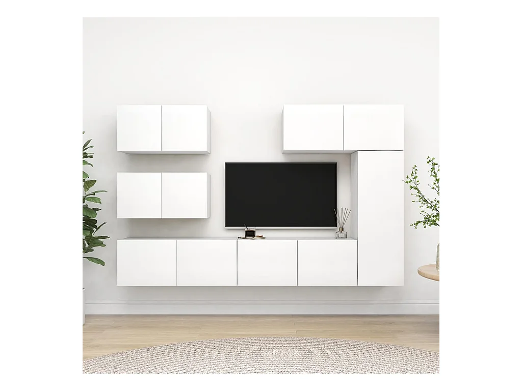 Ensemble de meubles TV 7 pcs Blanc Bois d'ingénierie