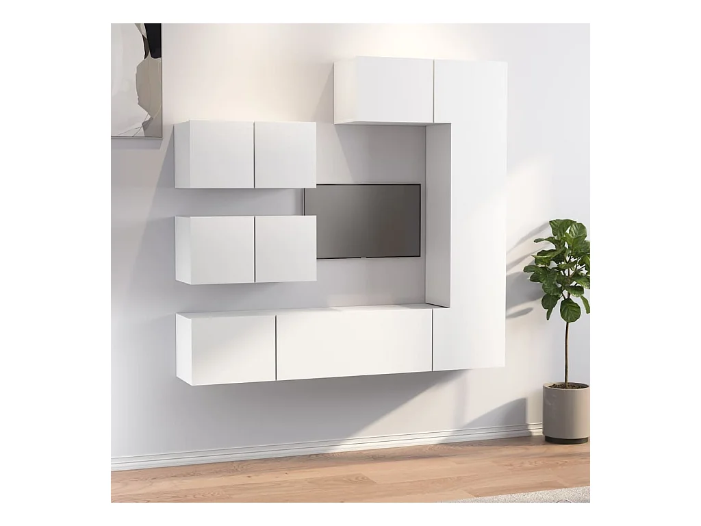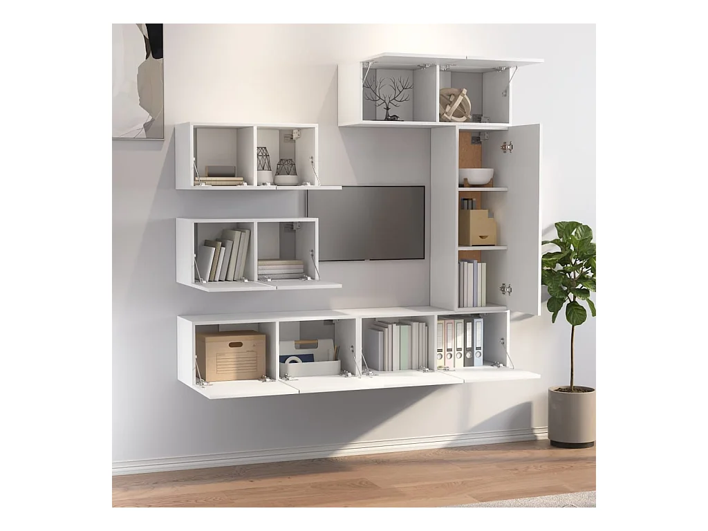 Ensemble de meubles TV 7 pcs Blanc Bois d'ingénierie