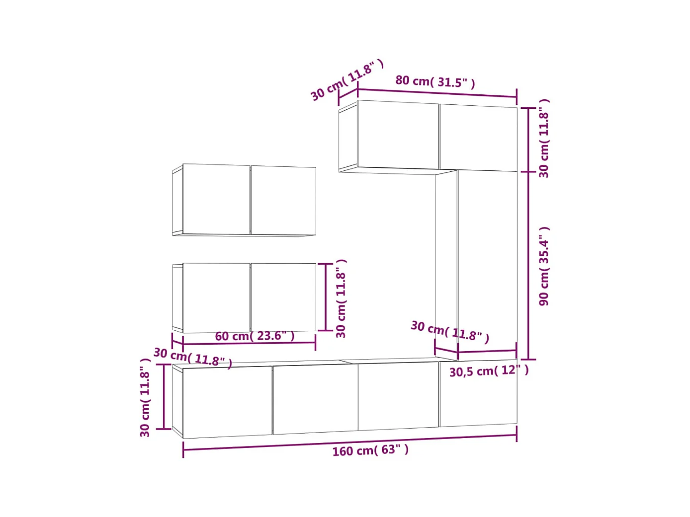 Ensemble de meubles TV 6 pcs Blanc Bois d'ingénierie
