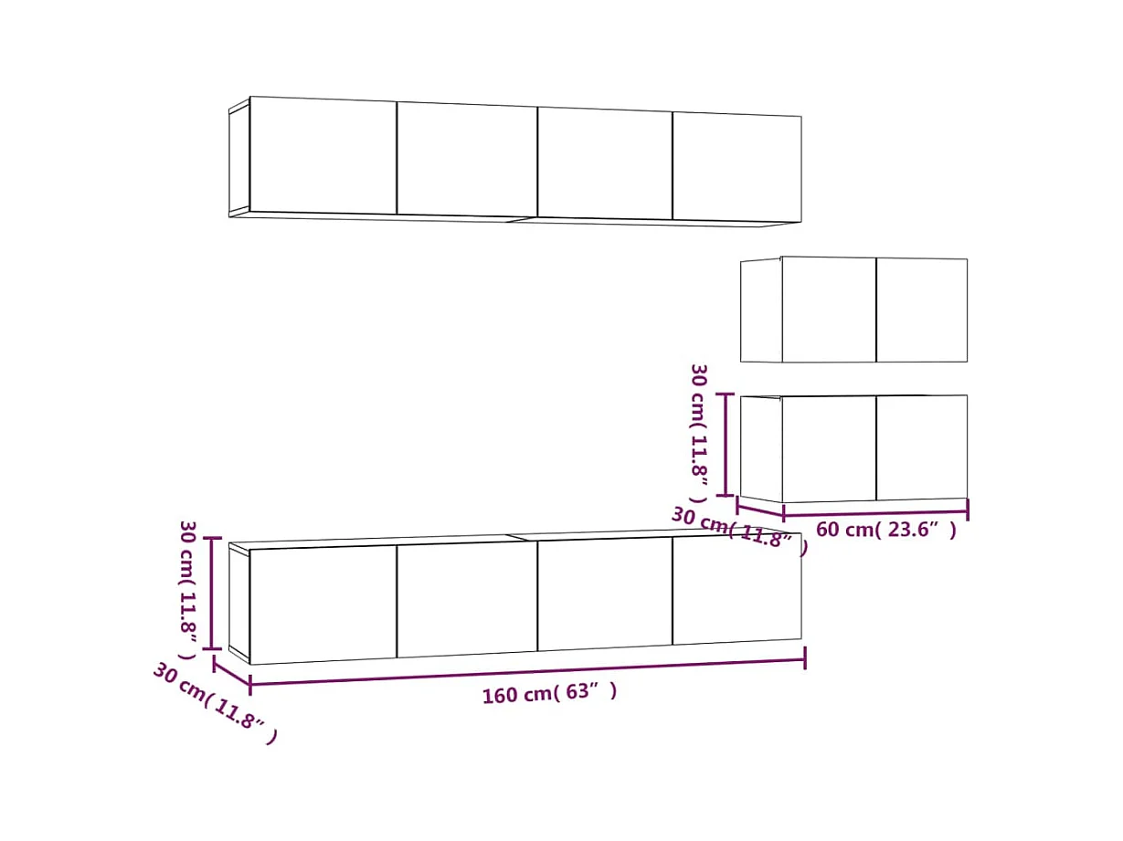 Ensemble de meubles TV 6 pcs Blanc Bois d'ingénierie