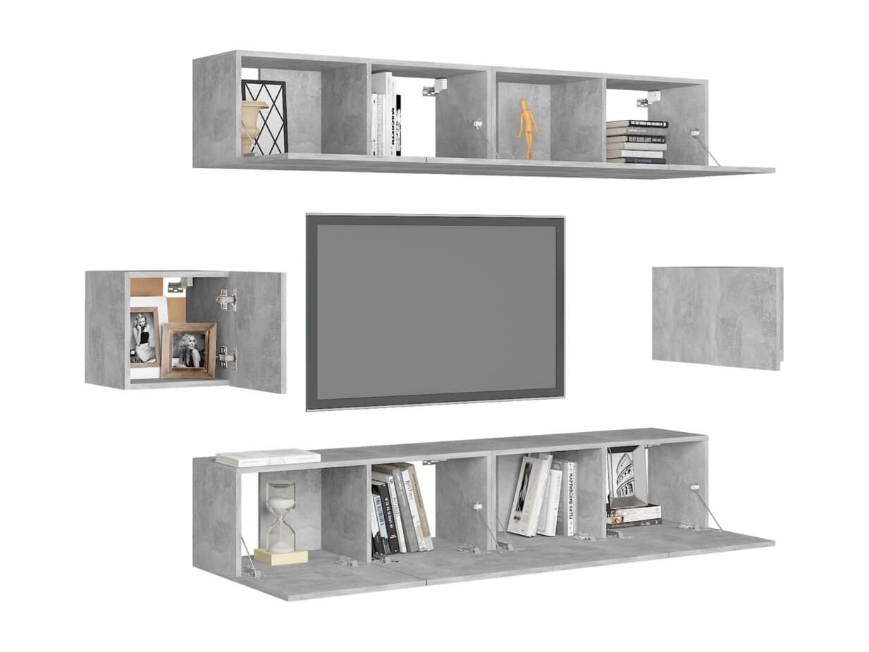 Ensemble de meubles TV 7 pcs Gris béton Bois d'ingénierie