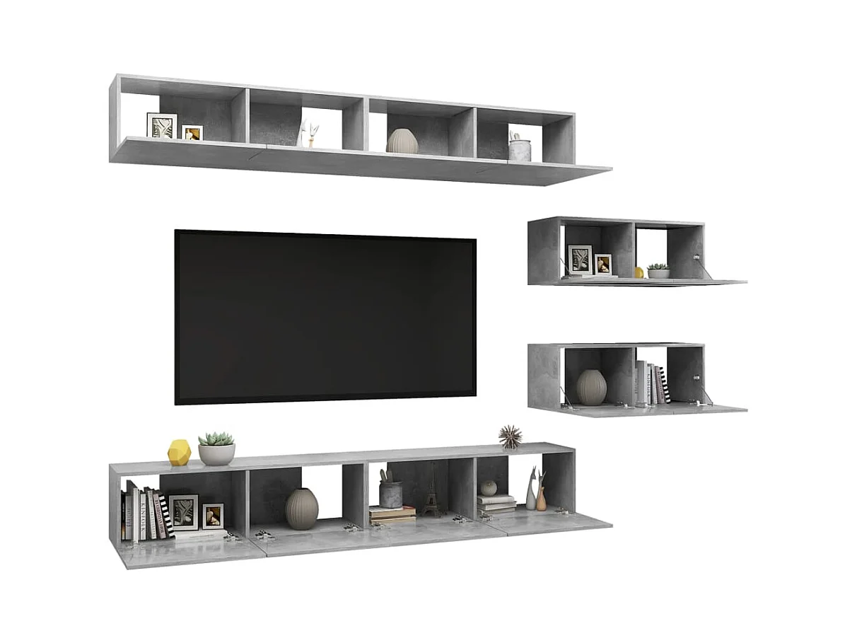 Ensemble de meubles TV 6 pcs Gris béton Bois d'ingénierie