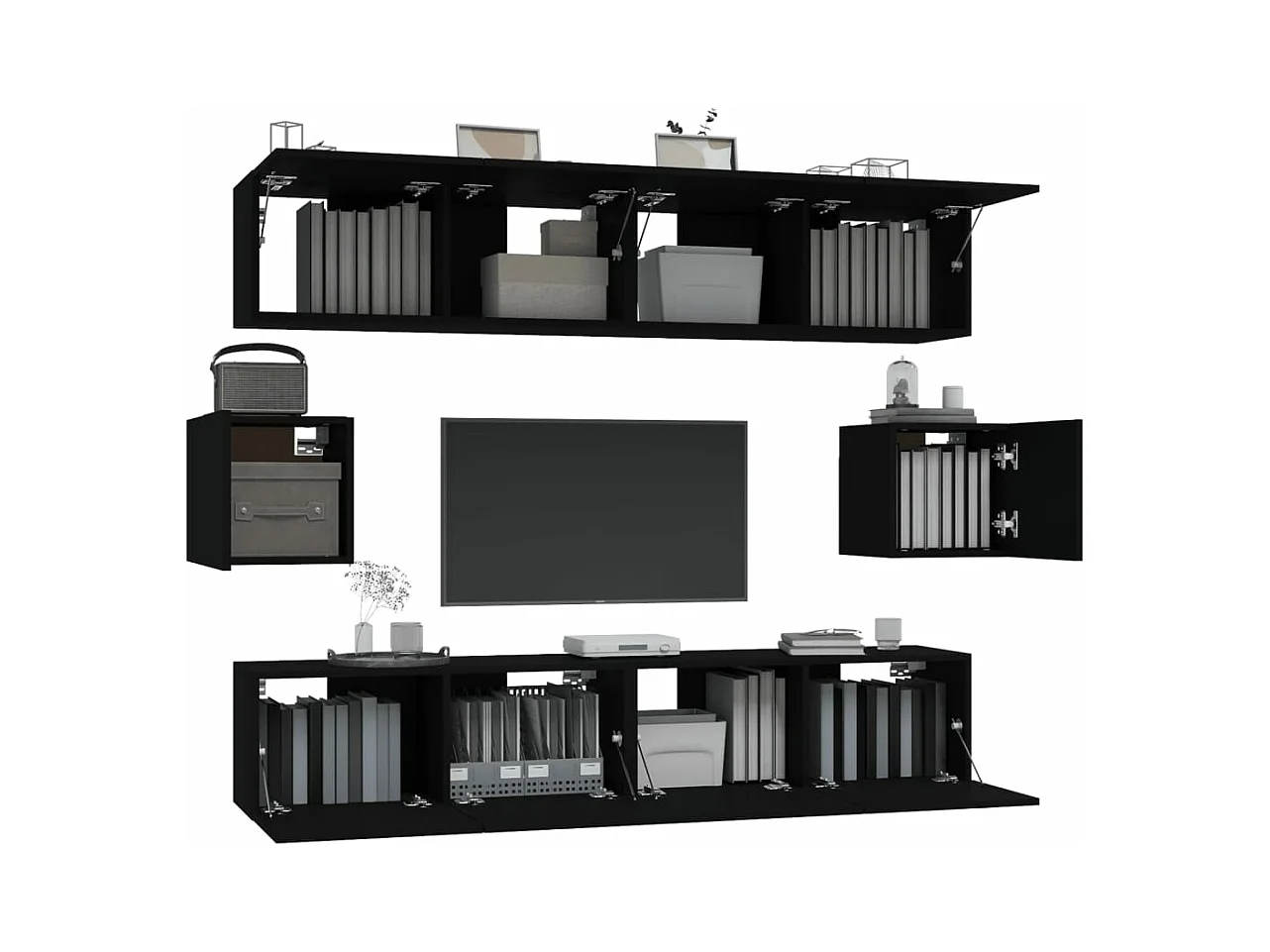 Ensemble de meubles TV 6 pièces Noir Bois d'ingénierie