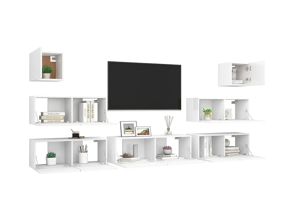 Ensemble de meubles TV 7 pcs Blanc Bois d'ingénierie