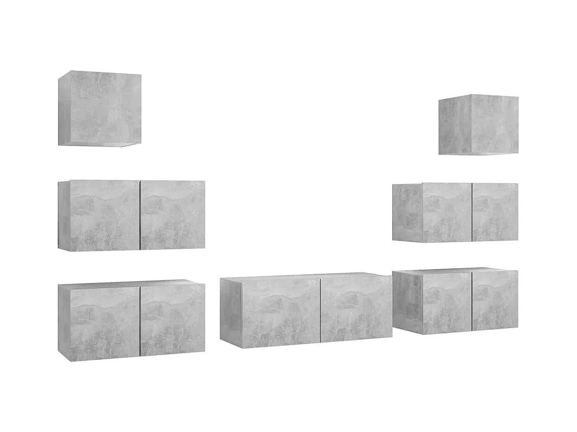 Ensemble de meubles TV 7 pcs Gris béton Bois d'ingénierie
