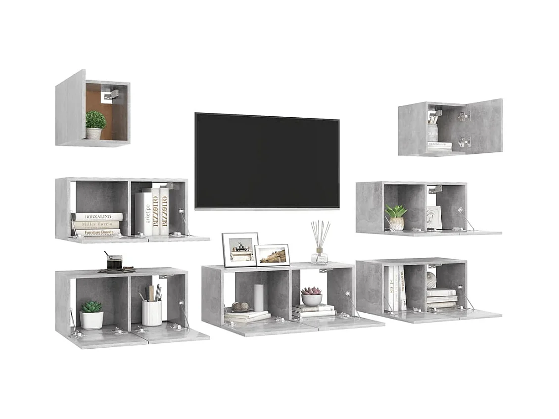 Meubles TV 8 pcs Gris béton Bois d'ingénierie