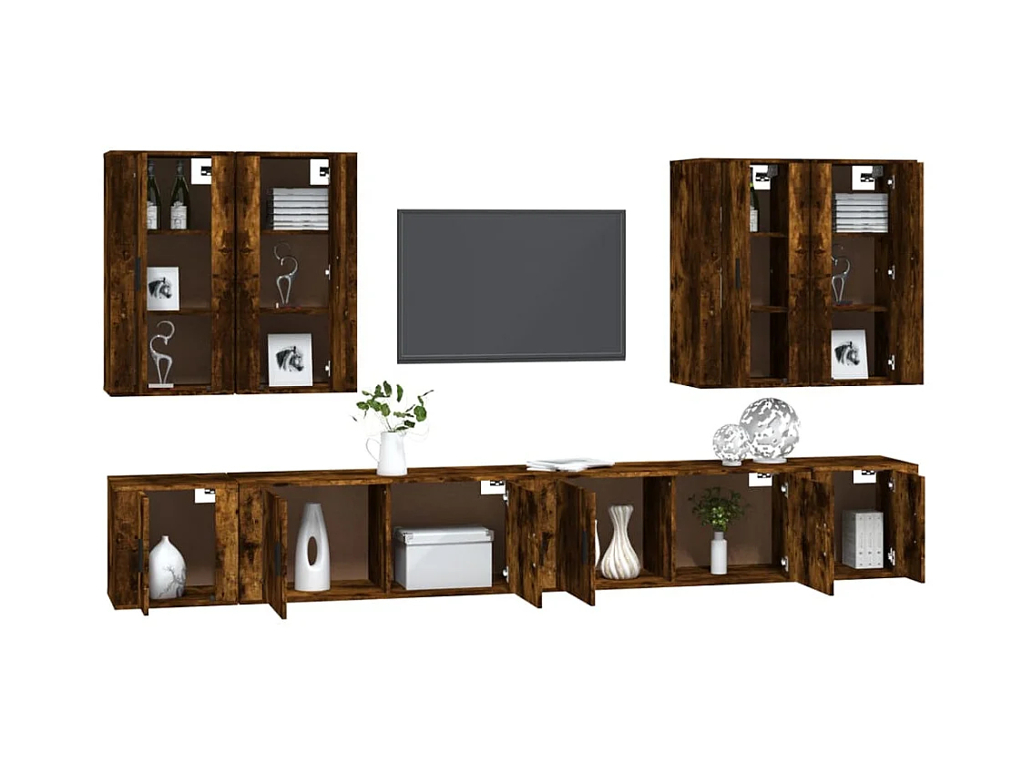 Ensemble de meubles TV 8 pcs Chêne fumé Bois d'ingénierie BE55175