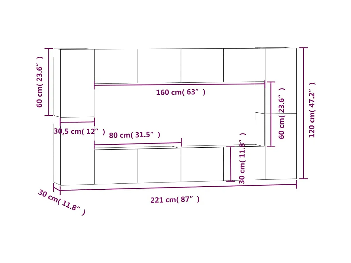 Ensemble de meubles TV 8 pcs Chêne marron Bois d'ingénierie